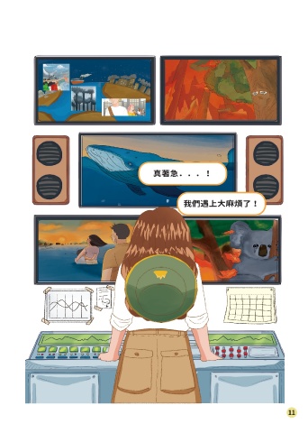 天氣好熱!冰溶化了!到處都是海水... 我的寶寶還不會游泳,怎麼辦... 天氣好乾好熱! 真著急...! 森林失火! 我們遇上大麻煩了! 我燒傷了 ! 海水上升好快! 我的家被海水淹沒消失了... 10 11