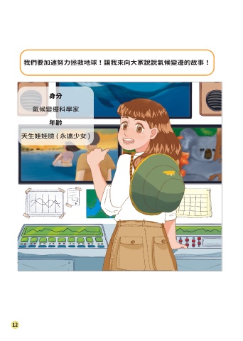 我們要加速努力拯救地球!讓我來向大家說說氣候變遷的故事! 第一篇 P.13 身分 地球真的發燒了嗎 ? 氣候變遷科學家 年齡 天生娃娃臉 ( 永遠少女 ) 第二篇 P.41 森林與海洋是減碳最佳好朋友 第三篇 P.68 我們有減緩氣候變遷能力嗎 ? 12 13