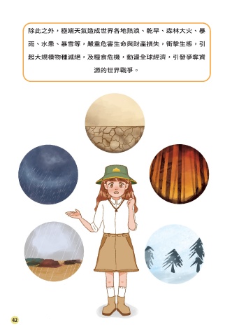 第二篇 除此之外,極端天氣造成世界各地熱浪、乾旱、森林大火、暴 雨、水患、暴雪等,嚴重危害生命與財產損失,衝擊生態,引 森林與海洋是減碳 起大規模物種滅絕,及糧食危機,動盪全球經濟,引發爭奪資 源的世界戰爭。 最佳好朋友 42 43