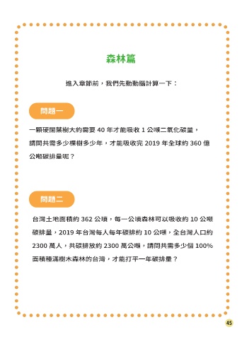 面積種滿樹木森林的台灣,才能打平一年碳排量?