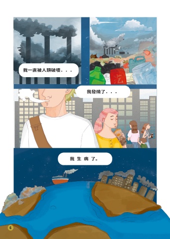 我一直被人類破壞... 我家失火 ... 我發燒了... 親朋好友又一直被盜伐... 我好傷心。 我 生 病 了。 6 7