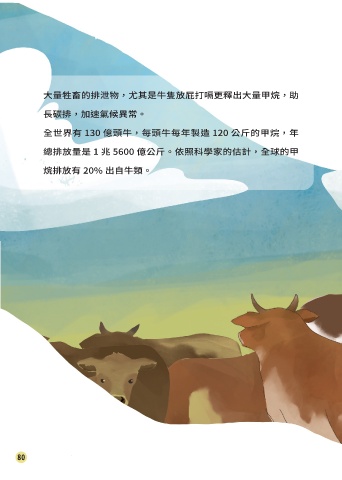 大量牲畜的排泄物,尤其是牛隻放屁打嗝更釋出大量甲烷,助                                                            因此,在加拿大、澳洲、紐西蘭已開始調整畜牧流程,在飼料