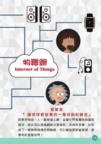物聯網 Internet of Things 答案是 『 讓地球更智慧的一種技術和概念』 如果把物品、人、動物連上網,並讓它們有獨特的識別 身分,彼此可以透過網路分享資訊,完成許多事,就形 成了一個物物相連的物聯網,可以營造更節省資源、更 便利的智慧世界! 13 14
