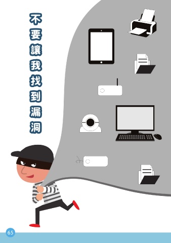 找 我 讓 洞 漏 到 要 不 雲端 答案是『網路攻擊』 物聯網是透過網路串連而成,駭客會透過網路來 進行攻擊、感染,意圖破壞物聯網設備或服務。 65 66
